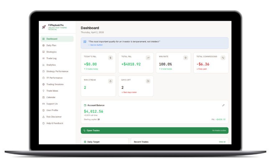 Whether you’re just starting out or already experienced, FXPlaybook Pro gives you the tools to track every trade, analyze your performance, and uncover what truly works for you.